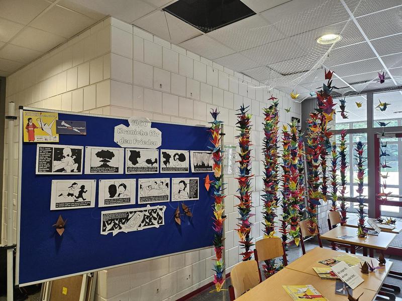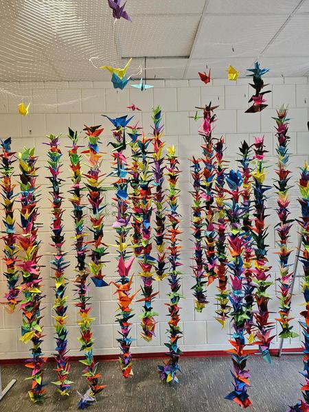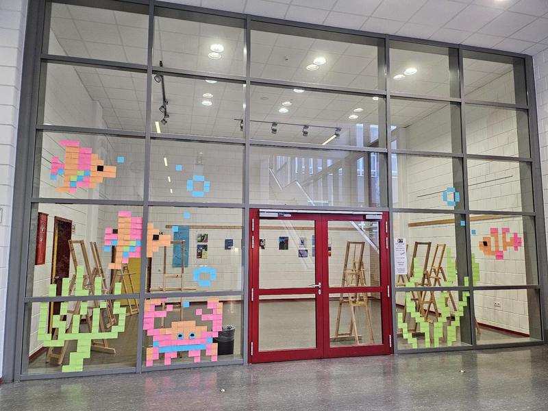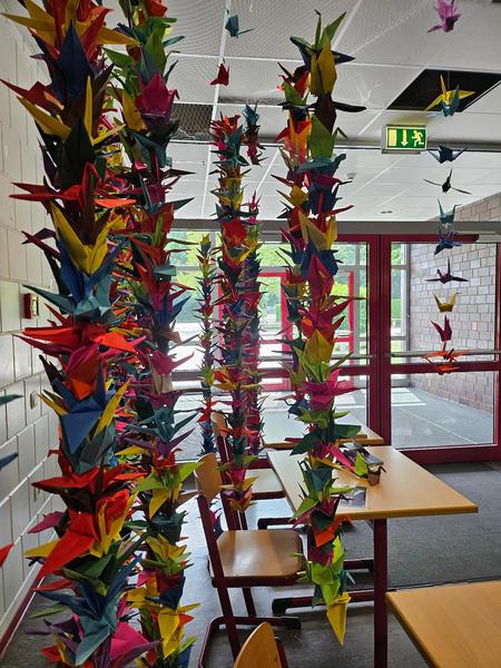 Unter dem Motto „Was mir gut tut“ erlebten unsere Schülerinnen und Schüler eine inspirierende Projektwoche voller kreativer und bewegender Aktionen. Besonders eindrucksvoll zeigte sich der Einsatz für den Frieden: Gemeinsam wurden 1.000 bunte Kraniche gefaltet und am Ende der Woche für ein Friedensprojekt eingeschickt. Kunstinteressierte konnten sich draußen im Graffiti ausprobieren oder—passend zum Regenwetter—kreative Pixelkunst mit bunten Post-Its gestalten. Im Kunstatelier herrschte konzentrierte Stille, während die jungen Künstlerinnen und Künstler ihrer Kreativität freien Lauf ließen.