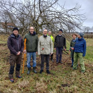 Angeleitet wurden sie dabei zum einen durch drei ehrenamtliche Helfer, die sich selbst in professioneller Weise am Baumschnitt beteiligten und ihr Fachwissen mit den Helfern teilten. Auch Familie Cordes trug durch die Beköstigung aller maßgeblich zum Gelingen der Aktion bei. Ihnen allen gilt besonderer Dank – wie auch Imke Reiners von den Landesforsten Niedersachsen, die die Streuobstwiese am Vareler Wald mit ihrem Team kultiviert hat.